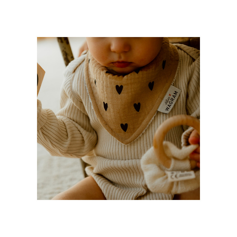 Ah, les jolies bulles de salive que font nos tout-petits ! Très mignon à observer, mais difficile de garder leurs vêtements au sec. Nous avons trouvé une solution pratique ET jolie pour ce problème : le bandana. Assez grand pour protéger les vêtements de votre bébé, vous ajoutez ainsi un détail joyeux à leur tenue.