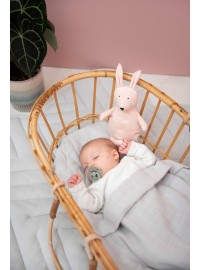 Ce joli doudou est fabriqué en coton 100% biologique certifié GOTS, et rempli de polyester 100% recyclé. Vous pouvez donc être sûr que ce compagnon de jeu ne contient aucune substance nocive.
