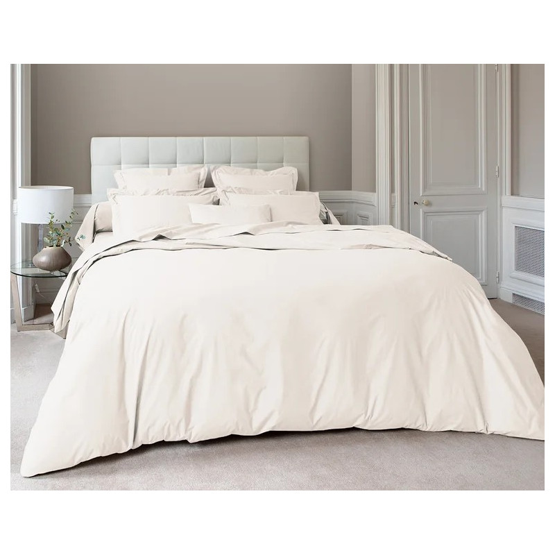 Profitez de douceur et du confort chaque soir en vous glissant dans cette housse de couette en percale 100% coton peigné longues fibres et avec un tissage de 80 fils/cm² pour une bonne résistance même lavage après lavage. Sa finition bouteille permet une belle retombée de la couette sur le lit.