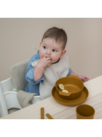 Ces deux bols en plastique végétal permettent de créer un décor convivial à table. Le pack comprend deux couleurs différentes qui s'harmonisent bien. Les larges poignées du bol sont pratiques pour nourrir votre petit ou elles seront très utiles lorsque les enfants commencent à tenir leur bol tout seuls. La gamme de vaisselle d'origine végétale comprend également des bols, des gobelets et des couverts pour compléter votre décoration de table. Le design de cette gamme est conçu pour répondre aux besoins des jeunes parents et des enfants. Tous les articles sont bien empilables, vont au lave-vaisselle et ils peuvent être utilisés au micro-ondes pour réchauffer brièvement les repas. Le haut rebord de l'assiette permet aux enfants qui apprennent à manger seuls de facilement remplir des cuillères. Le gobelet, la cuillère et la fourchette sont parfaits pour les petites mains. La gamme de vaisselle est fabriquée à partir de plastique d'origine végétale. Ce matériau s'appelle le PLA, ce qui signifie PolyLactic Acid. Il est fabriqué à partir de ressources biologiques renouvelables (comme le maïs, la canne à sucre, les déchets agricoles, etc.) au lieu de pétrole. La production de PLA nécessite moins d'énergie que les plastiques conventionnels et le matériau ne contient aucune toxine. Le matériau peut être recyclé et il est biodégradable dans des circonstances industrielles. Lorsque le bon scénario de fin de vie est suivi, l'impact sur l'environnement est réduit au minimum. Il est conforme aux standards LFGB et ne contient ni BPA ni de mélamine.